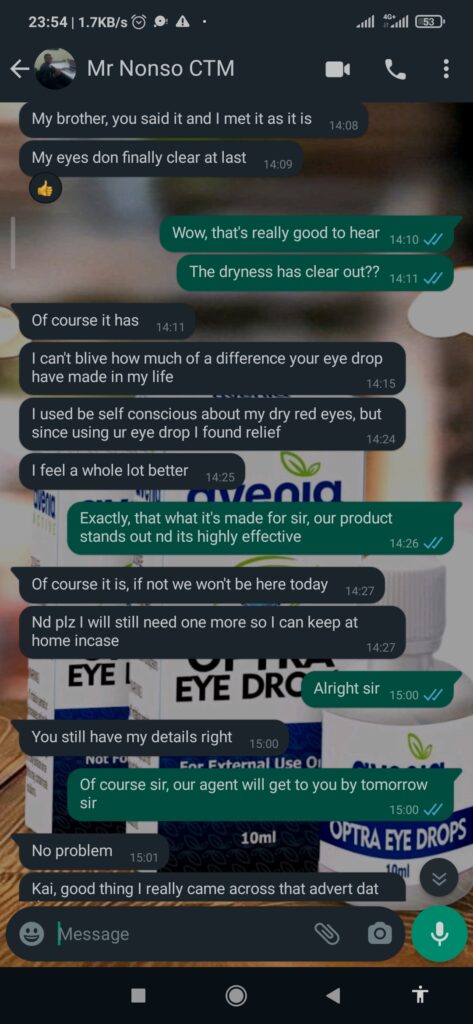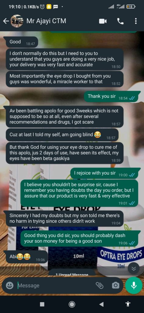 8 months ago, my doctor said i had glaucoma. this was after i could not read or see clearly again. I was gradually getting blind. He told me i needed to treat it immediately before it gets worse. He said Glaucoma can lead to total blindness if not treated on time. He then introduced this product to me to start using. After i started using it, my eye sight started getting clearer. I don't even use a glass anymore